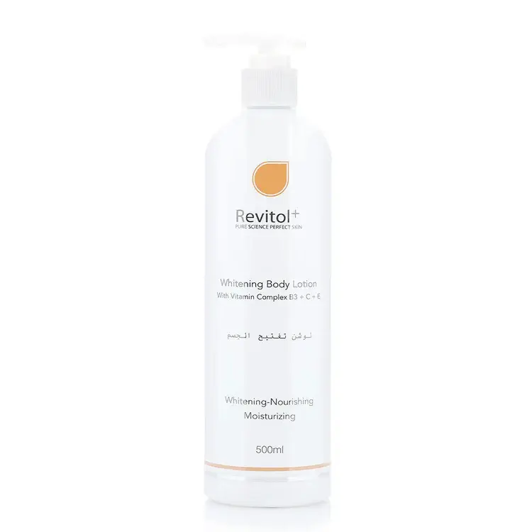 لوشن تبييض الجسم ريفيتول 500 مل لوشن غير دهني، سريع المفعول، غني بالهيدروكينون، يساعد على تقليل التصبغات الزائدة. يحتوي على أحماض ألفا هيدروكسي وزبدة الشيا لتنعيم البشرة.