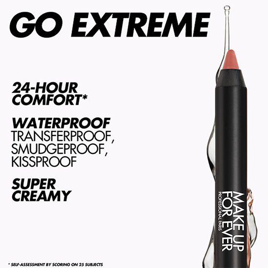 قلم تحديد الشفاه أرتست كولور إكستريم هو قلم تحديد شفاه يدوم طويلاً: فهو مقاوم للتسرب ومقاوم للماء ومضاد للتلطخ ومضاد للتقبيل. كما أنه يظل مريحًا لمدة 24 ساعة* بفضل تركيبتنا الكريمية فائقة الصبغة. تركيبة الجل الكريمي المبتكرة لدينا توفر لمسة نهائية غير لامعة بضربة واحدة فقط.